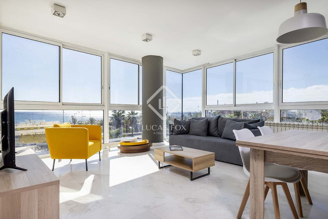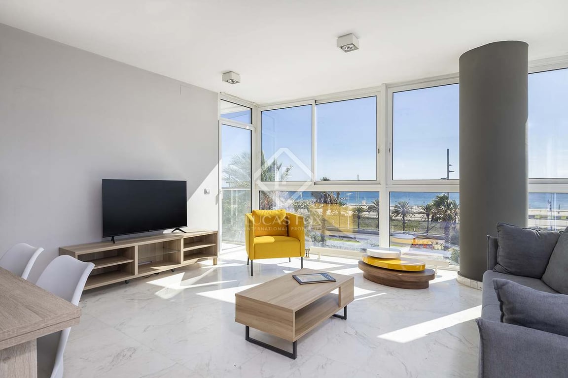 This seafront property is located 2 minutes from the sea in Diagonal Mar in a building erected in 2002, designed by the prestigious architect Ricardo Bofill and with a recently renovated façade. The building has 2 lifts and a garage with the possibility of obtaining a parking space. The property in question measures 116 m2 and is contemporary and minimalist in style. It boasts incredible natural light and fabulous sea views. The living room is very spacious and features large windows with sea ...