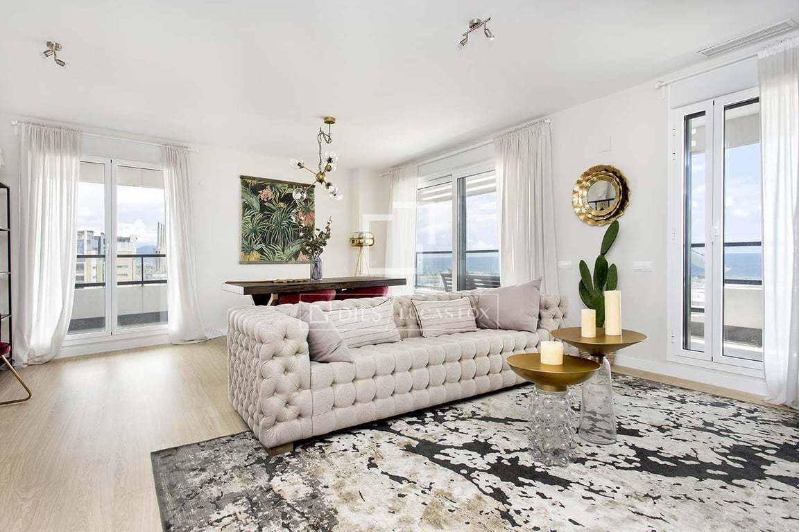 This unique property in Diagonal Port offers an exclusive lifestyle in the sought-after Diagonal Mar neighborhood. Located on a high floor, it boasts breathtaking sea views. The apartment features an inviting entrance hall leading to three bedrooms, one of which is en-suite, as well as a second full bathroom. The living area consists of a spacious living room, dining area, and a separate kitchen with direct access to a terrace, perfect for enjoying outdoor living. As part of a gated communit...