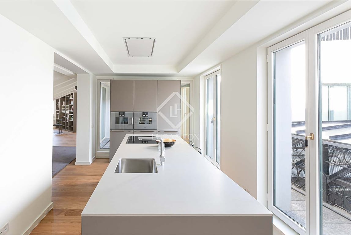 This magnificent penthouse apartment crowning the new Casa Burés is in an area once dedicated to service and storage and has been transformed into a minimalist, contemporary living space. The new architectural design preserves the most iconic elements such as the balustrades and sloping ceilings while adding new features such as skylights that bring natural sunlight and an original touch to the space. The highly contemporary interior design, featuring white hues and soft lines inspired by na...