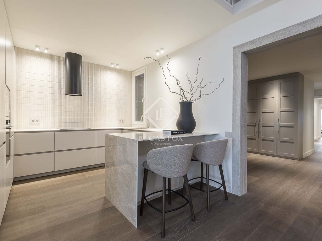 Fully renovated apartment for sale. Located in the emblematic Eixample district of Barcelona, in a period building from 1940 that perfectly combines classic charm with contemporary design. The area stands out for its lively cultural and gastronomic life, as well as its excellent public transport connections for easy access to any point in the city. With a constructed area of 161 m2, the property includes a bright living room dining room room, an integrated equipped and furnished kitchen, three...