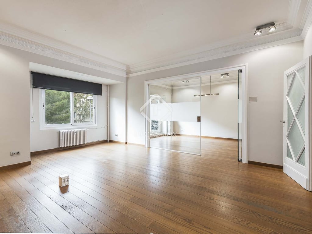 This property, dating back to around 1945, has a surface area of 331 m2 and is excellently located in a period building with concierge service in one of the most exclusive areas of Barcelona. Its huge windows face Avenida Pau Casals and a very quiet courtyard . Today, it has several spacious rooms, including two large open-plan spaces. The current layout divides the property into a reception area, a main study with a meeting room, a large open-plan workspace and two guest toilets. The property...