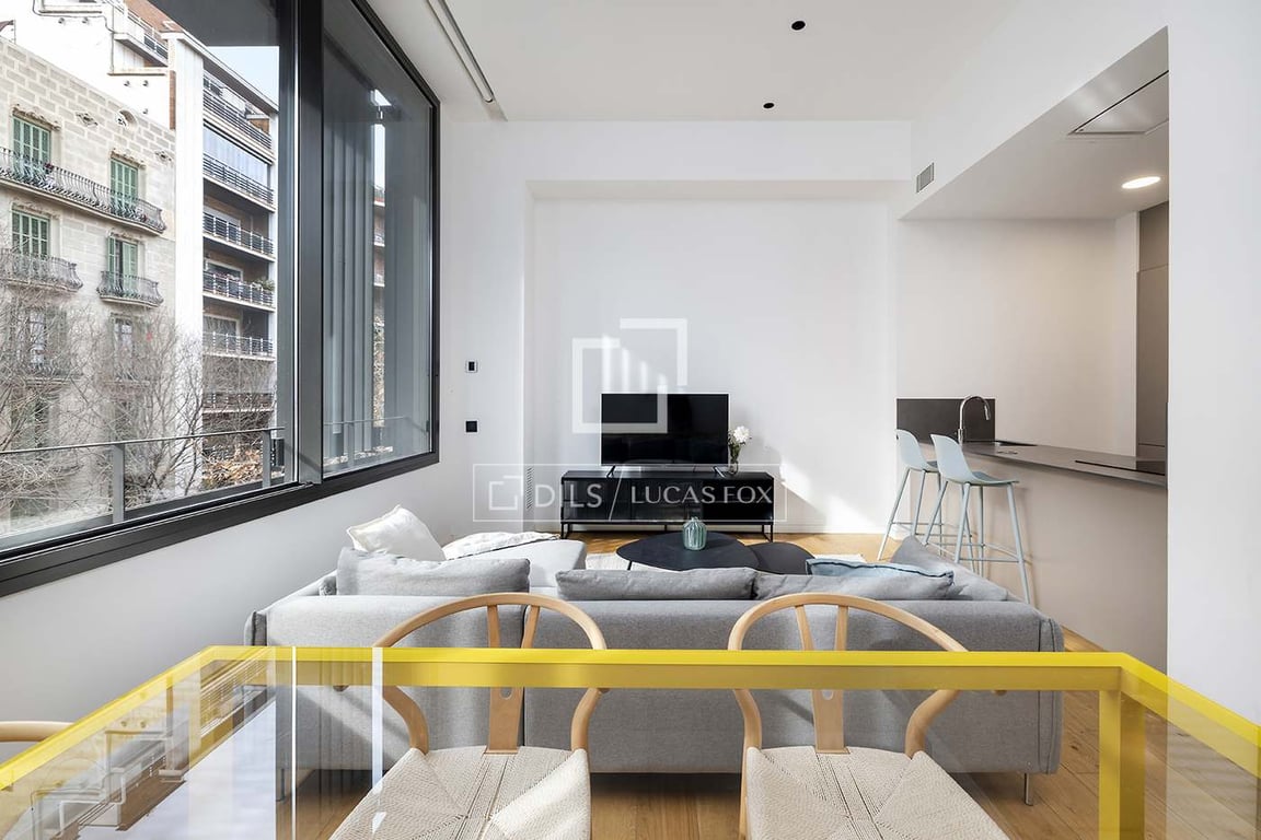 This building, the result of a major refurbishment completed in 2018, has an exceptional location, right at the intersection of Aribau and Provença streets. It retains its classic façade with more height, to which a beautiful new build rise has been added. The property is located on the third floor of La Finca and on the upper floor. For this reason, we highlight its large windows facing Aribau Street, which provide the day area with exceptional light, which is unusual in l'Eixample. Althoug...