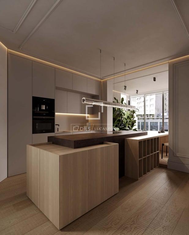 Renovated apartment with four large bedrooms and a cozy 19 m2 terrace. This property is located on a high floor of a classic building in the area, so it receives a lot of natural light throughout the day. The day area has a surface area of 77 m2 , which is distributed in a huge living room with an open kitchen equipped with high-quality appliances , a utility room and a charming chill-out area with a fireplace. The laundry area is conveniently located behind the kitchen and has enough space fo...