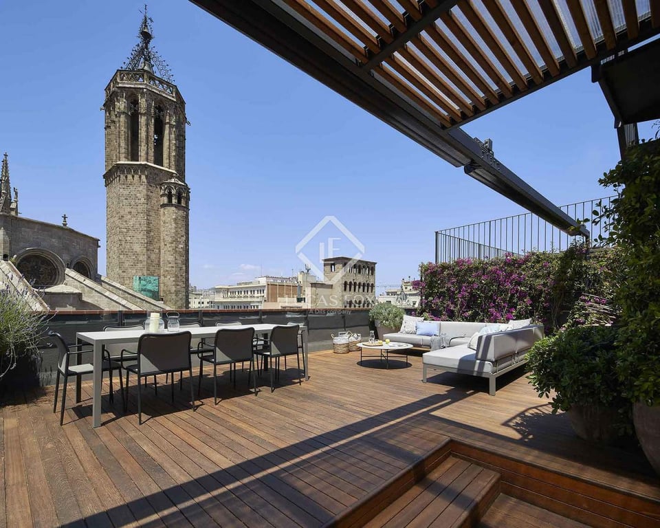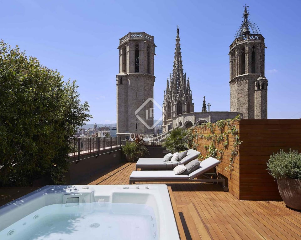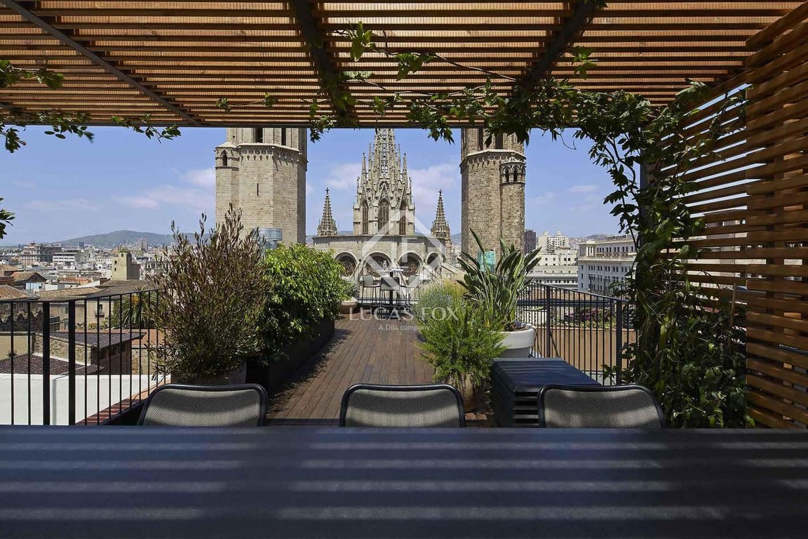 Nestled within the historic charm of Barcelona’s Gothic Quarter, this one-of-a-kind luxury penthouse offers an unparalleled living experience in one of the city’s most sought-after neighbourhoods. Situated in an elegant and a modern building equipped with a lift, this exclusive residence seamlessly blends contemporary comfort with timeless urban allure. Spanning 73 m2 of refined interior space, the apartment features two serene bedrooms and two sleek bathrooms, each finished to the highest sta...