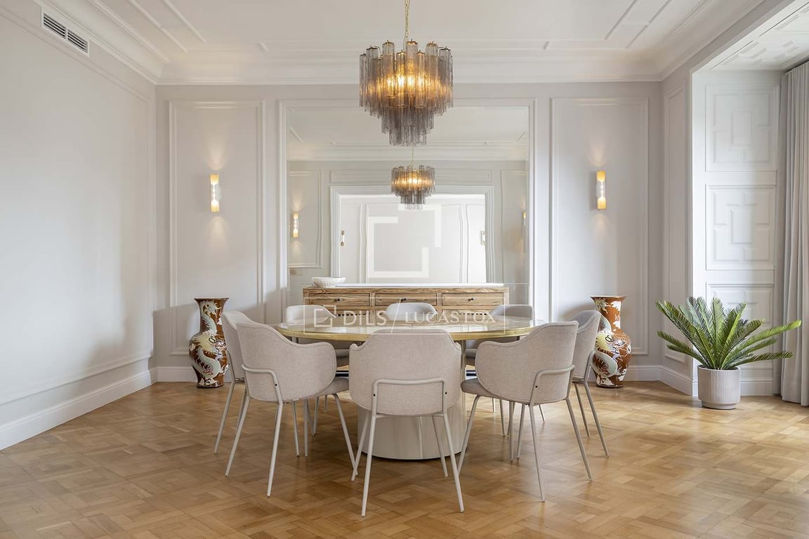 Nobohome has just completed the renovation of this impressive 250 m2 apartment on the 3rd floor, which boasts stunning views of Muntaner Street from its prime location on Diagonal Avenue. The modernist building boasts a spectacular lobby, with a lift thanks to the concierge's careful maintenance. A second service elevator at the end of the lobby enhances the building's comfort. The apartment has been meticulously redesigned and renovated, ensuring maximum comfort and style. The spacious livi...
