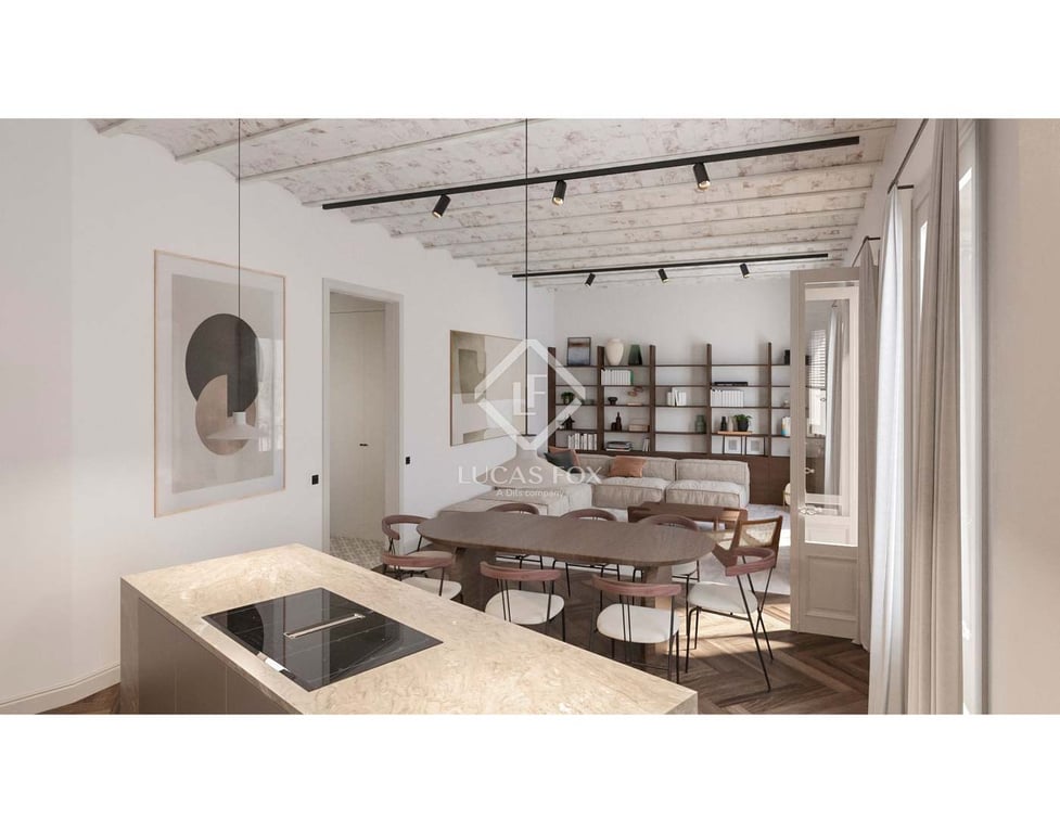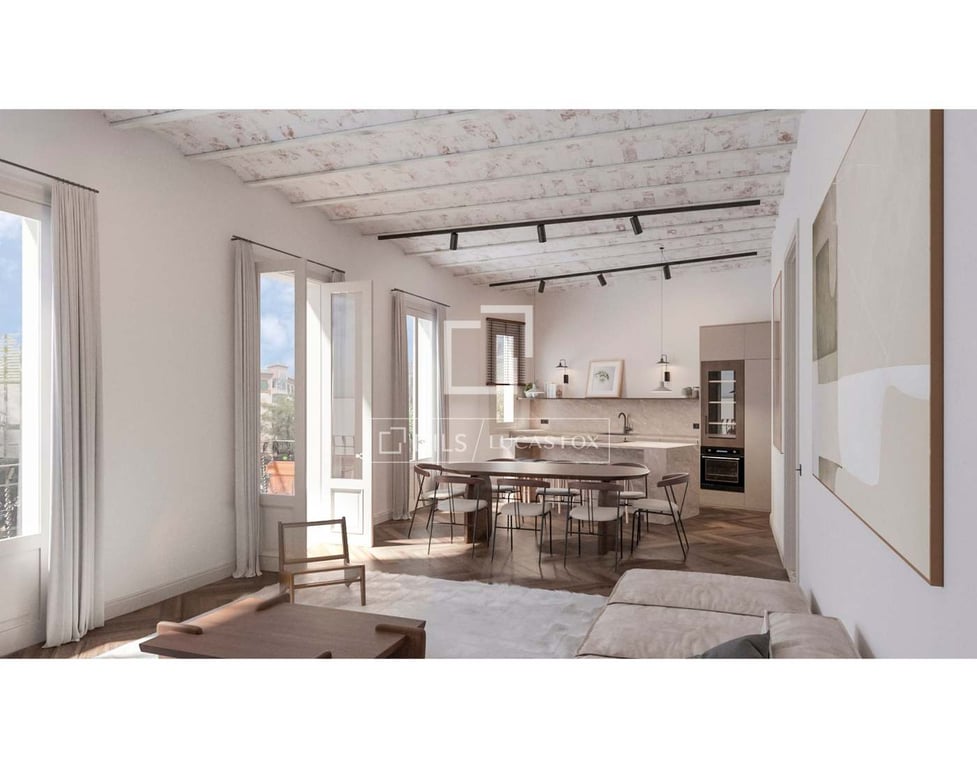 Beautiful apartment in the process of being completely renovated whilst maintaining many of the original features, for sale in the most attractive semi-pedestrian street Enric Garnados in Eixample. The apartment is a corner unit on the second floor of a stately building dating back to the early 20th century. This modernist building is by a renowned architect and has a lift. This is a dual aspect property with front views of the street and rear views of the interior plaza and has a built are...