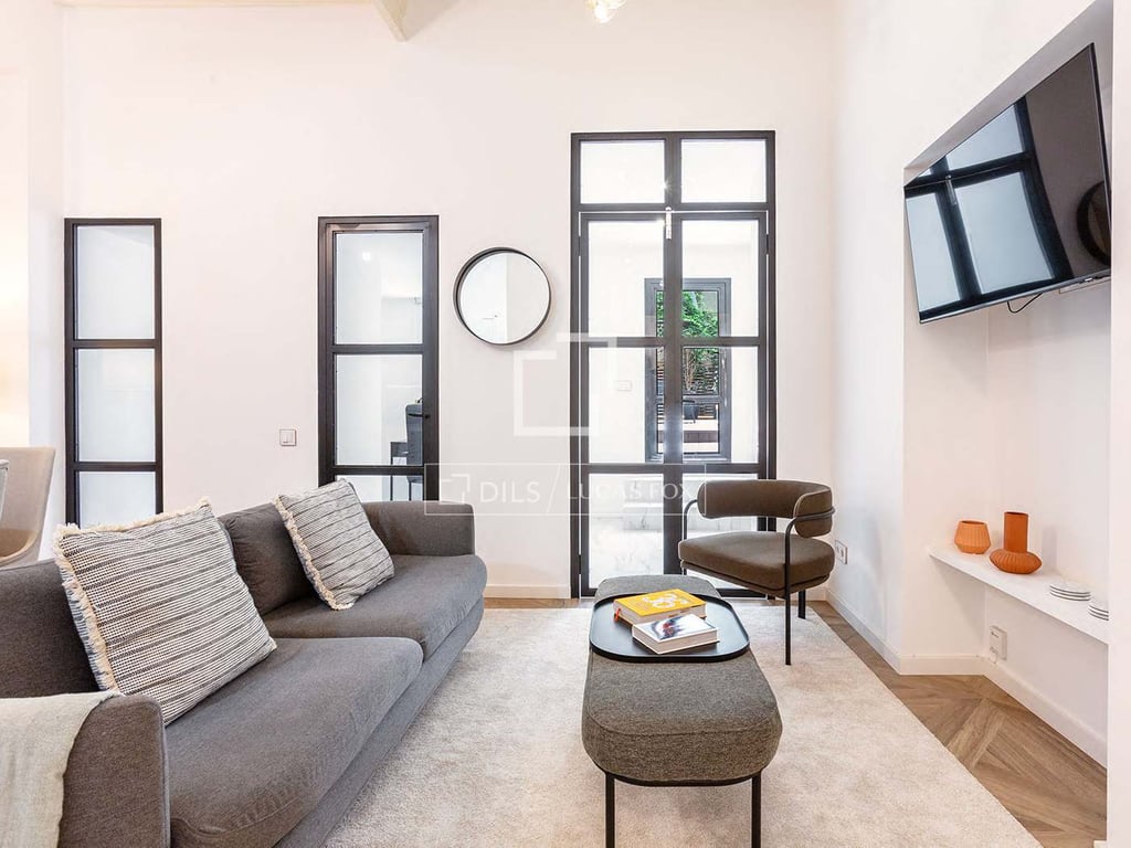 Renovated apartment with private use terrace and large bedrooms in the most demanded location of iconic Gorhic Quarter. This property, just few minutes walk from Soho House, was tastefully renovated with high quality materials and combines the best of authentic charm and modern comfort. The area of the property is thoughtfully divided between a spacious living room with open kitchen and access to the terrace, two spacious bedrooms and two complete bathrooms. The living room is facing southwest...
