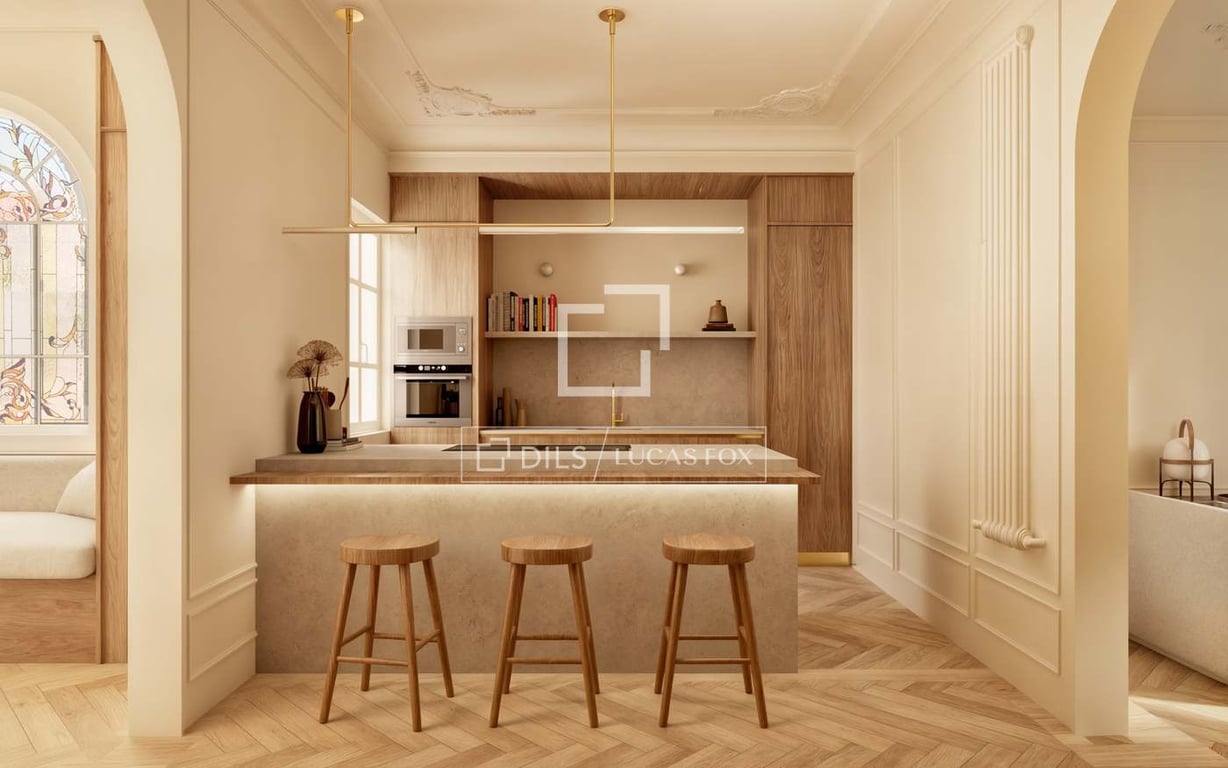 Discover an unparalleled living experience with this exceptional property set in the heart of Barcelona’s coveted Eixample district. Just a short stroll from Passeig de Gràcia and Rambla Catalunya, this elegant home is currently undergoing a meticulous renovation to the highest standards. Here, timeless modernist craftsmanship is reimagined through a contemporary lens to deliver the perfect blend of historical charm and modern-day luxury. Boasting 179.49 m2 of refined interior space, this resi...