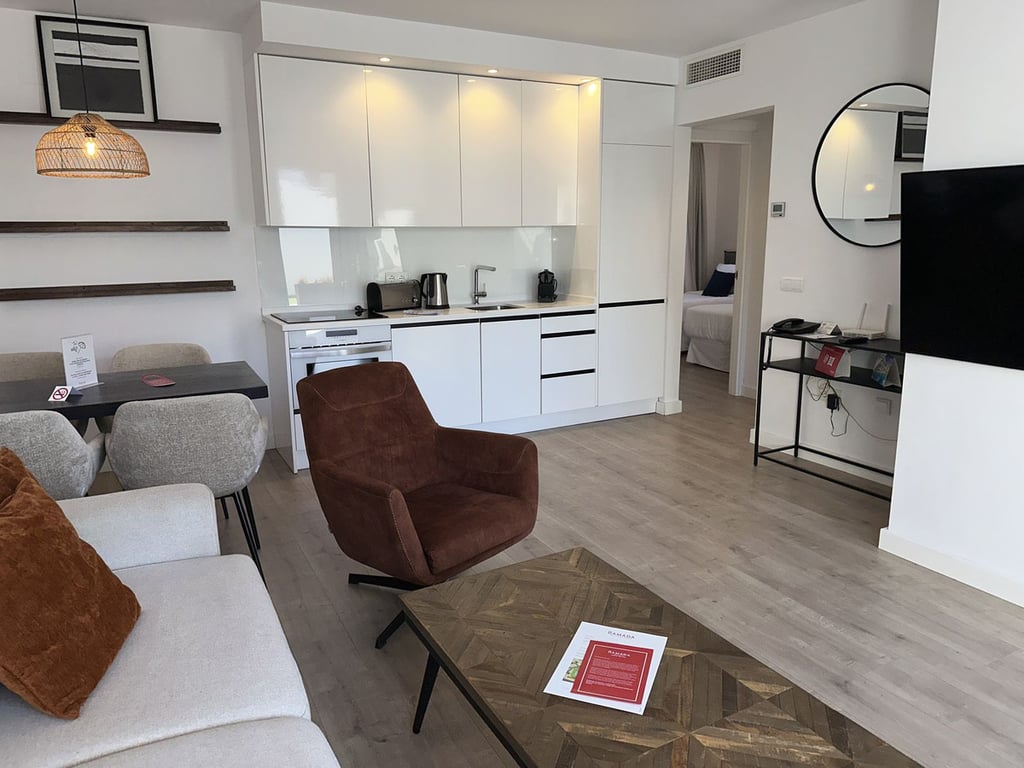 This beautifully renovated, ground‑floor beachfront apartment is offered fully furnished and elegantly decorated—ready to enjoy. Ideally situated just a 5‑minute walk from the beach, the property combines comfort with an unbeatable coastal lifestyle. Its south‑east orientation ensures abundant natural light and delightful sea views. The interior features an open‑plan kitchen, living, and dining area, along with two bedrooms and one bathroom. With a valid tourist license and full management provi...