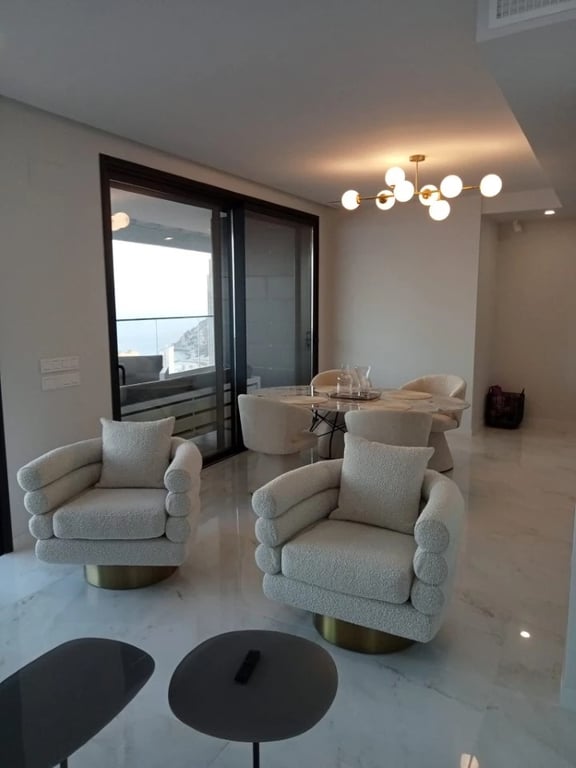 Welcome to an elite residence located on the 33rd floor, offering an unrivaled living experience with stunning panoramic views. The highlight of this luxurious home is its spacious terrace, perfect for entertaining guests or enjoying serene moments of relaxation overlooking the stunning cityscape. Upon entering this exceptional apartment, you will be greeted by an open concept living room flooded with natural light thanks to the floor-to-ceiling windows that frame the fascinating views. The mod...