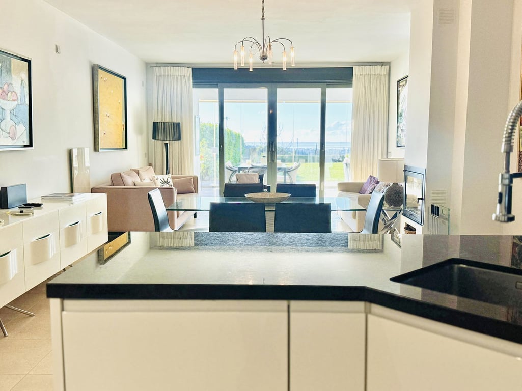 Beautiful 2-bedroom, 2-bathroom Ground-Floor Corner apartment, fully renovated, located in the exclusive Tee 6 community within the prestigious Villa Padierna - Los Flamingos Golf Resort. The property features a new open-plan kitchen and refurbished bathrooms with high-quality finishes, offering a modern and sophisticated atmosphere. Large windows with electric shutters and glass curtains on the terrace ensure bright, comfortable spaces all year round. The apartment enjoys lovely sea views and ...