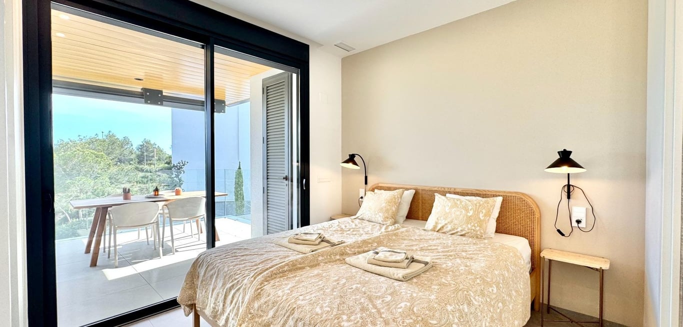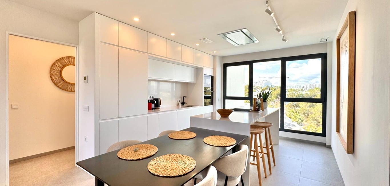 Sunny and modern 2-bedroom apartment in Las Colinas Golf~~Step into this bright and modern apartment where comfort, style, and light come together beautifully. The open-plan kitchen and living room create a welcoming space for cooking, relaxing, or spending time with family and friends, with plenty of natural light. From the living room, you have direct access to the sunny balcony, perfect for morning coffee, evening drinks, or a quiet moment with a book.~~The master bedroom features an en-suite...