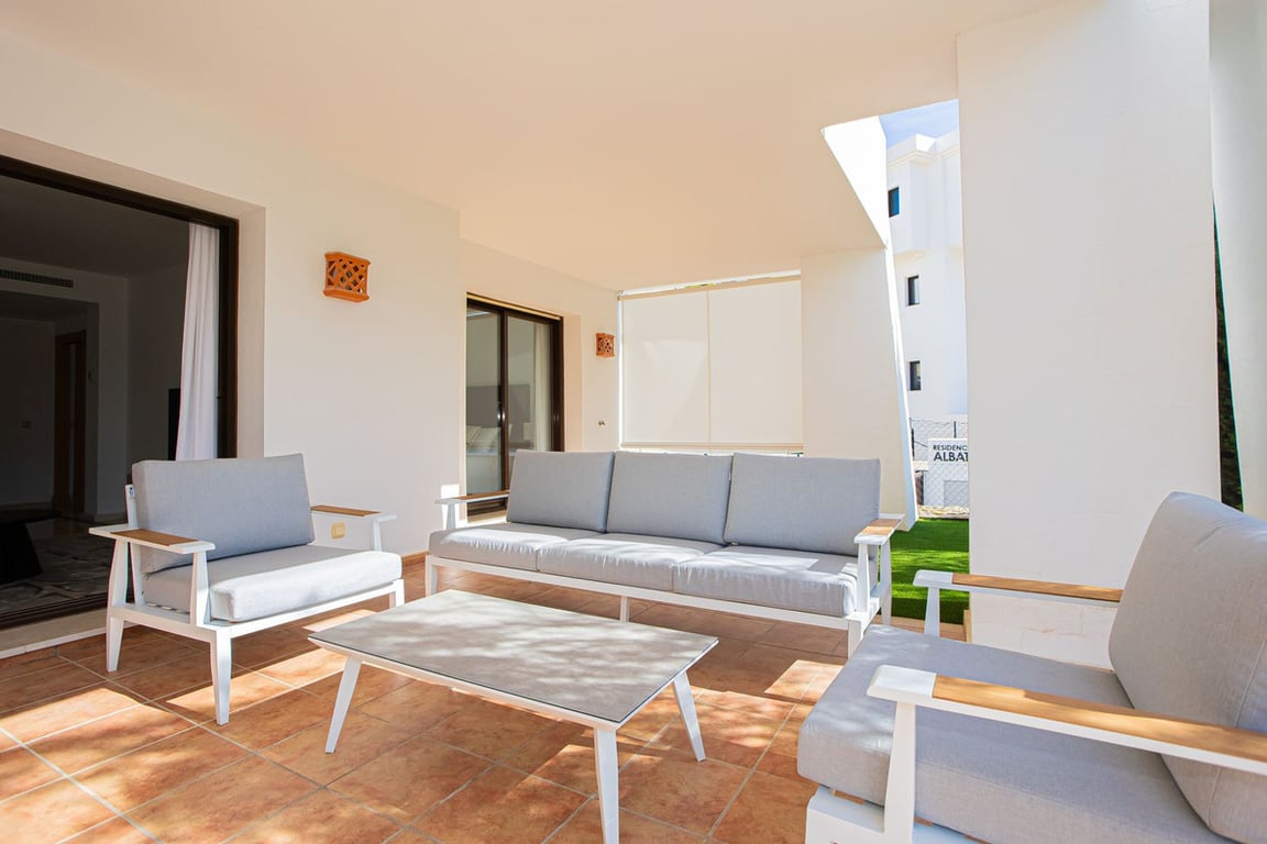 Quality ground floor 3 bedroom, 3 bathroom apartment with large outdoor covered terrace and garden – with Astro-Turf for easy maintenance. This apartment feels like a mini villa. Inside a 24h gated community, 1 mile from the beach, next to Finca Cortesin 5-star resort. 3 bedroom / 3 bathroom apartment with stylish new furniture, perfect for outdoor living. Located in a peaceful residence with 3 big pools, children’s pools, and green areas. Smart TV, fast wifi, & air-conditioning throughout. Exce...