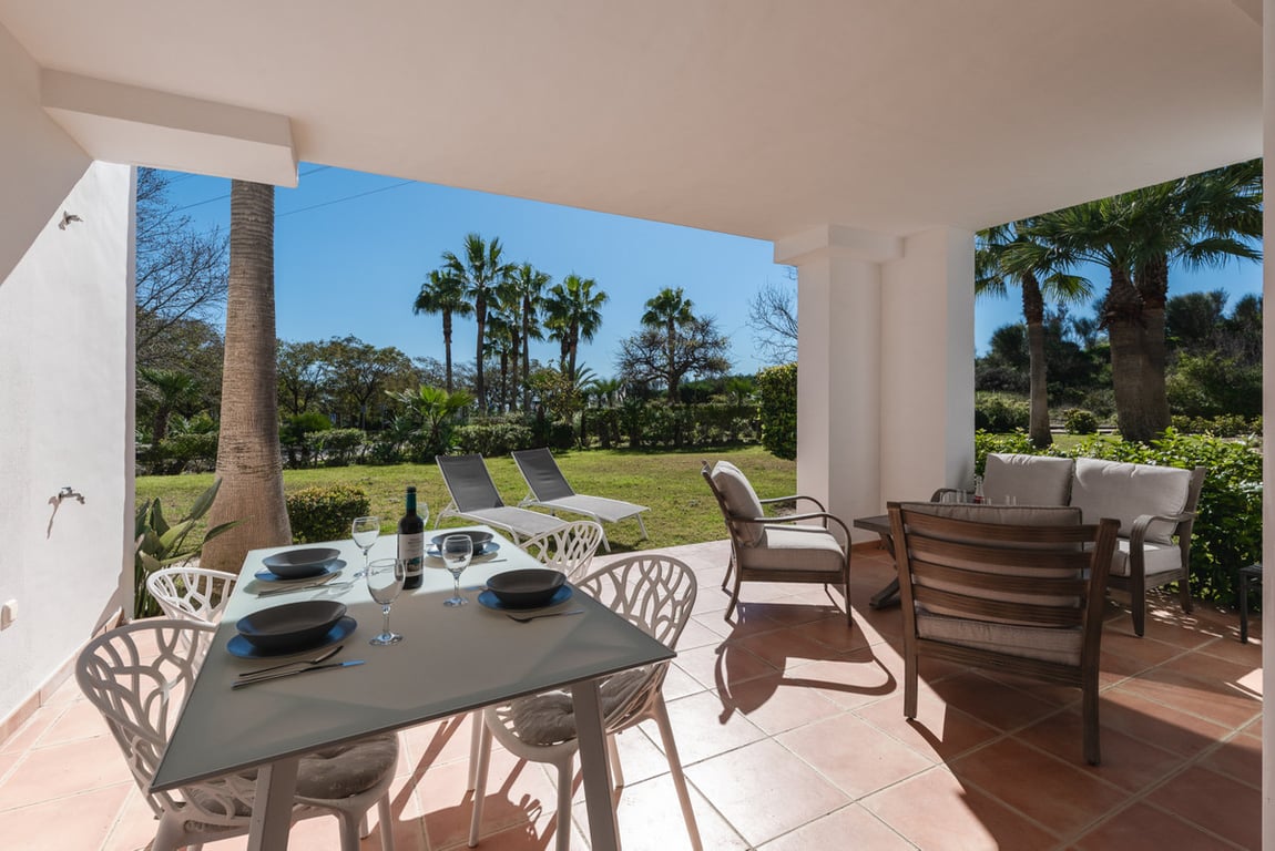Located within one of the most sought-after developments on the Costa del Sol, this stylish ground floor apartment offers an exceptional living environment, combining comfort, nature, and a true resort lifestyle. Its privileged position places you just a short walk from the stunning Crystal Lagoon, featuring a white sandy beach, as well as two communal swimming pools, all surrounded by beautifully maintained lush gardens. A მშვიდ and natural setting, perfect for year-round enjoyment. The propert...