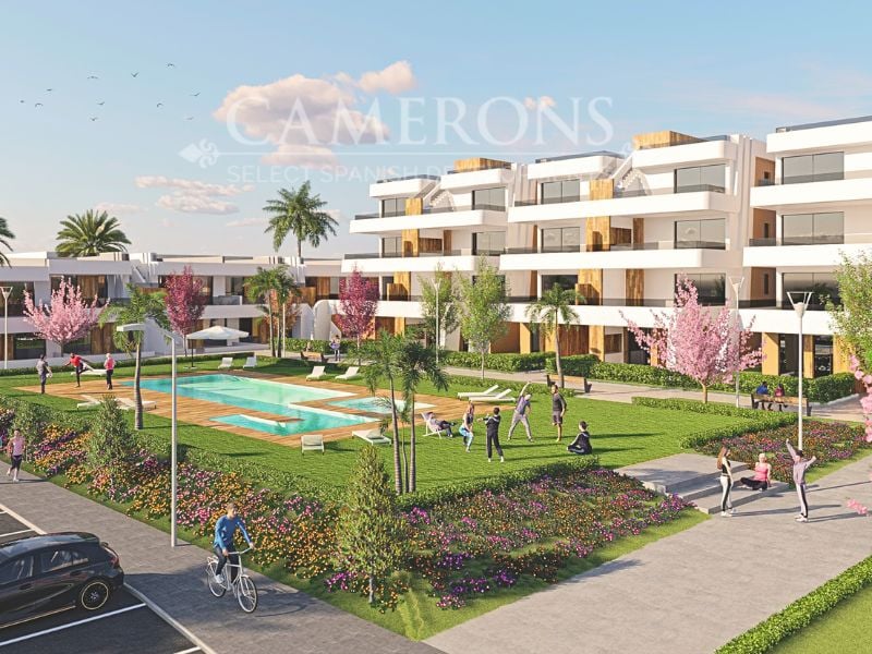 These apartments are built to the highest quality standards and are equipped with communal swimming pool, terrace with summer kitchen and car park on the surface for each unit.The dwellings are distributed over 4 floors, with 2 or 3 bedrooms and 2 bathrooms. The ground floors have 3 bedrooms (the third bedroom being an open studio without built-in wardrobe) and the upper floors have a large solarium.Alhama Nature is a natural paradise with a wide variety of plans to choose from enjoying the aut...