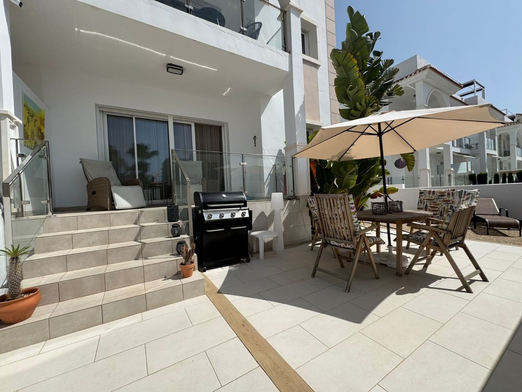 Welcome to this stylishly furnished ground floor apartment that leaves nothing to be desired. The apartment features two bright bedrooms, two bathrooms, and a spacious living and dining area. The apartment is fully furnished and equipped – a fitted kitchen with all appliances and air conditioning. You can move in immediately and feel at home. Of particular note is the direct access to the spacious communal area with a well-kept garden and a large pool, perfect for relaxation and recreation. ...