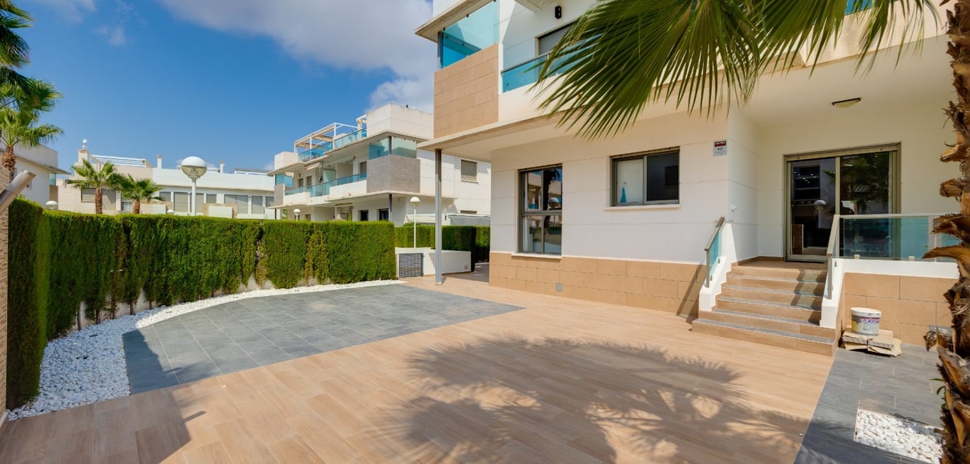 This beautiful apartment is located in one of the most sought-after areas of Ciudad Quesada and was completely renovated both inside and out between December 2024 and May 2025. Everything in the home appears new - a perfect choice for those who want a modern and move-in ready home in sunny Spain. The apartment consists of 3 bedrooms, 2 bathrooms, a spacious and bright living room with an open kitchen, as well as a private garden of 125 m2. It also comes with a storage room and its own parkin...