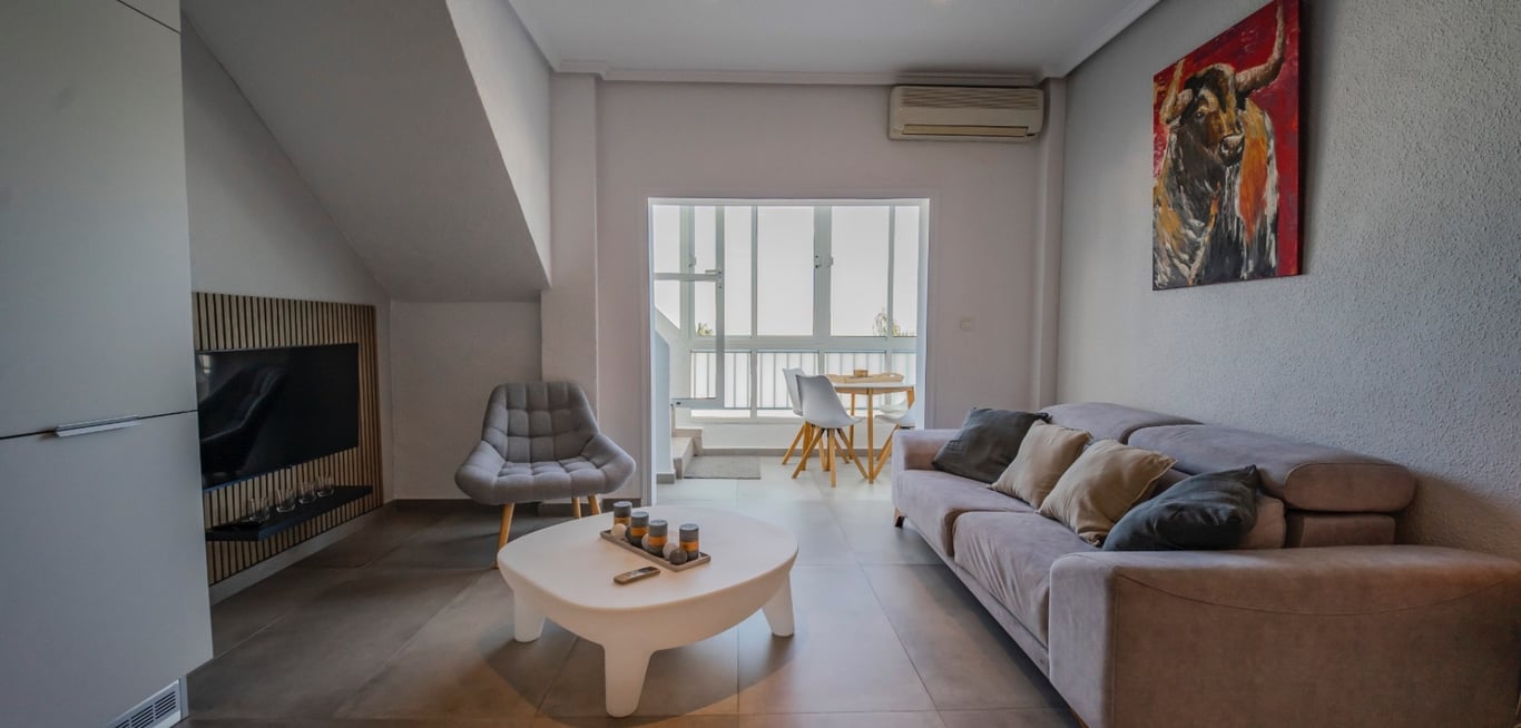 Discover Elevated Living Perched above the vibrant town of Ciudad Quesada, this beautifully renovated mini-penthouse (fully refurbished 2023/2024) spans the 2nd and 3rd floors, capturing breathtaking panoramic views of the Mediterranean and surrounding mountains from every room, the balcony, and the private rooftop terrace. Its unique floor plan creates both privacy and versatility two of the three bedrooms, together with a shared bathroom, form a separate upper-level suite accessed via th...