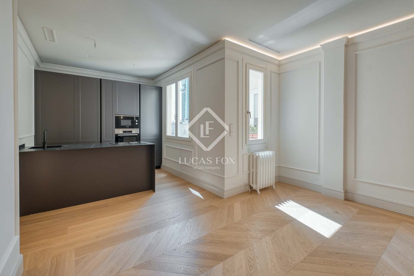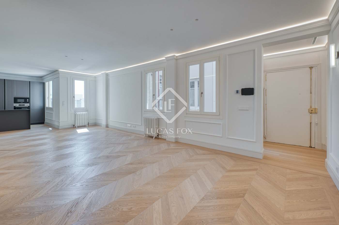 This apartment is located on one of the most iconic streets in the prestigious Almagro neighbourhood . This spectacular 125 m2 apartment is newly renovated with high-quality materials and a contemporary design that respects the classic essence of the building. Located on the top floor of a classic building , it stands out for its exceptional light and elegance. The property features two bedrooms, both with large built-in wardrobes, and three full bathrooms, providing great comfort for both pri...