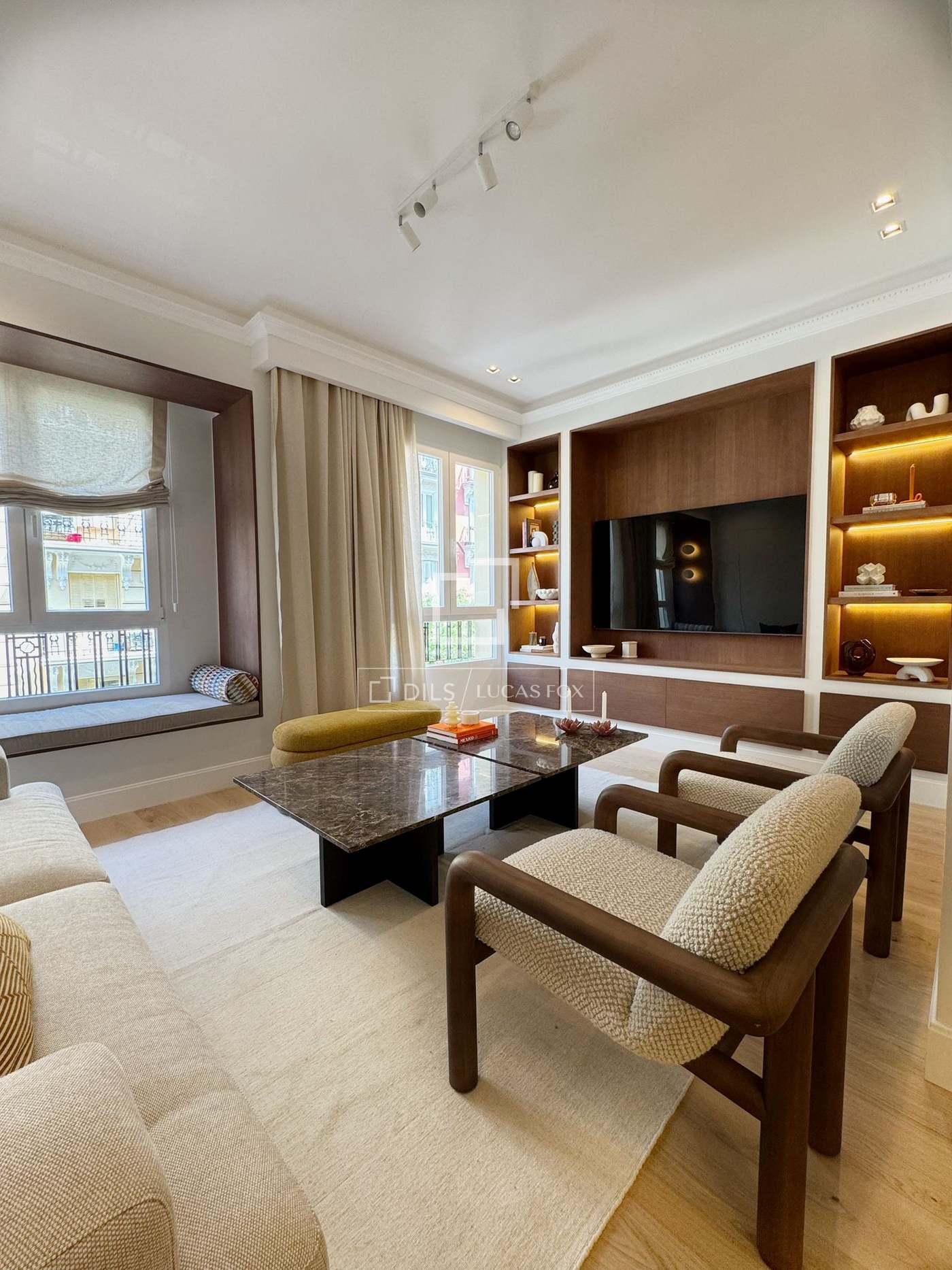 Lucas Fox presents this renovated property that combines the charm of classic architecture with a layout. modern and functional, designed to offer maximum comfort. Accessed through an elegant main door, we are greeted by a large lobby that leads to the social area, an open-plan and bright where the kitchen, dining room and living room are integrated, with two large windows facing Ayala Street and flooding the entire room with natural light. Next to this area is find the master suite , a spacious...