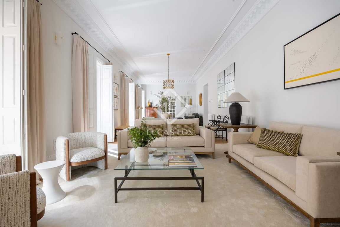 Lucas Fox presents this exceptional apartment for sale in the stately Jerónimos neighbourhood of Madrid. It is situated in a prime location, completely surrounded by iconic landmarks such as Retiro Park, the Prado Museum, the Botanical Garden , and the Jerónimos Church. This apartment is located on the ground floor of a landmark building from the early 20th century, with impressive ceiling heights of 3.70 meters and 14 balconies overlooking the street. It has been fully renovated with a design...