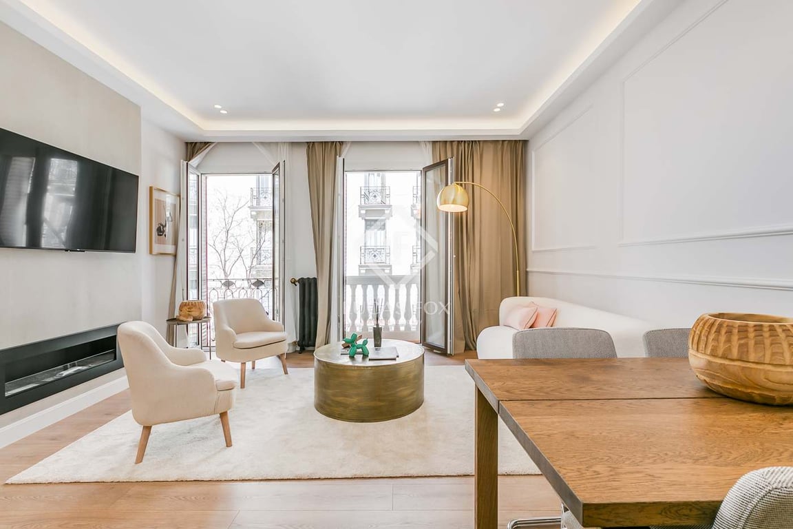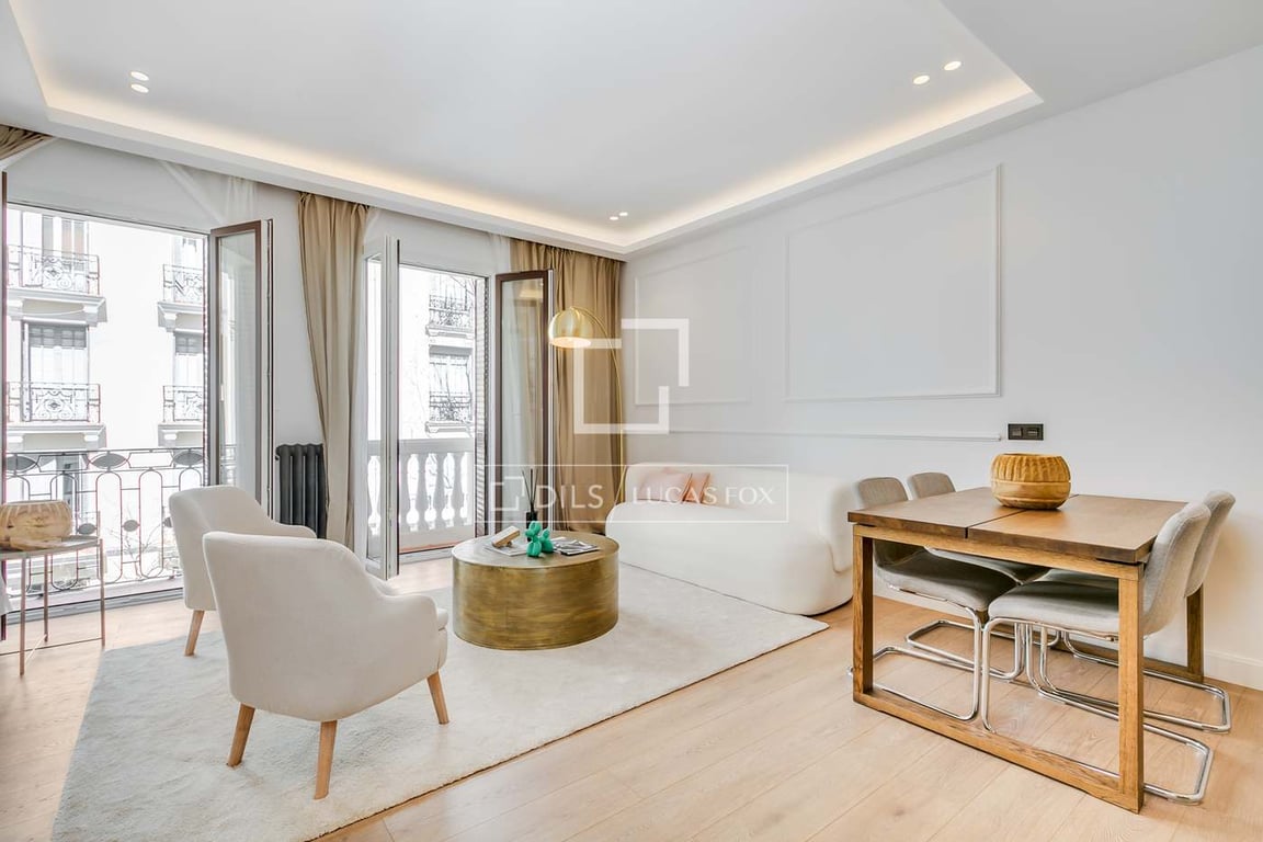 Lucas Fox presents this fantastic, newly renovated apartment in the prestigious Recoletos neighbourhood , located in a classic building with all the charm of traditional architecture and the comforts of a modern property . This bright, west- exterior property stands out for its two street-facing balconies, which add spaciousness and light to the space. The spacious and inviting living room features a modern, integrated designer kitchen. The layout is completed by a double bedroom , a full bath...