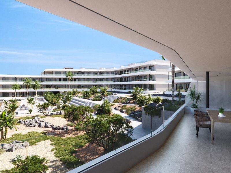 New build. Atlantic Homes in Costa Adeje. This apartment is in the north block on the 1st floor. The property comprises of 3 bedrooms with fitted wardrobes and 2 bathrooms. The interior is 86m2 with a terrace of 84m2, communal heated pool, garden and sea view and the terrace receives sun all day. The price included a parking space and storeroom. Due to be finished in January 2025. If you want a brand new property this is it.