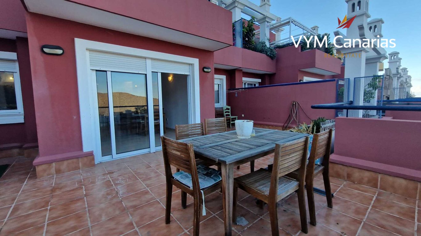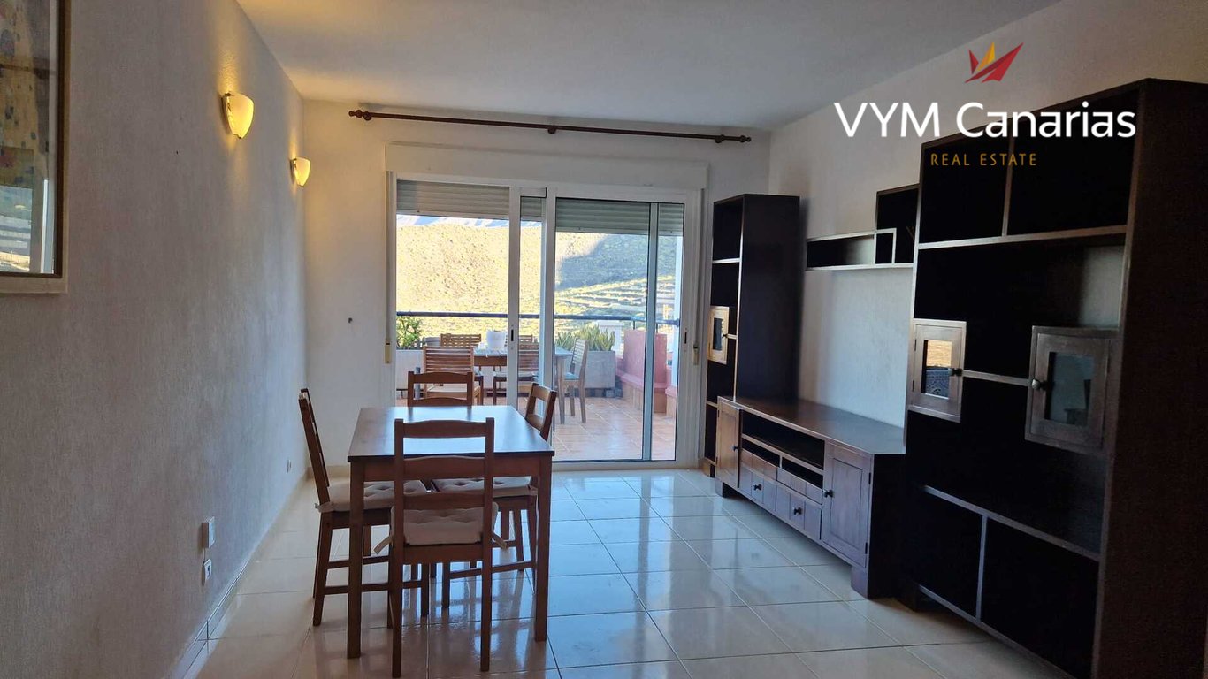 We offer you for sale an apartment in the complex "Roque del Conde". This spacious apartment consists of two bedrooms with built-in wardrobes and a dressing room, two bathrooms, an open kitchen, and a living room with access to a spacious terrace (45 m2) from where you will have a magnificent, unforgettable view of the ocean, the mountains of Adeje and the pool. The price of the apartment includes a storage room and a parking space in the garage (15m2). .VYM Canarias with 15 years in the market ...