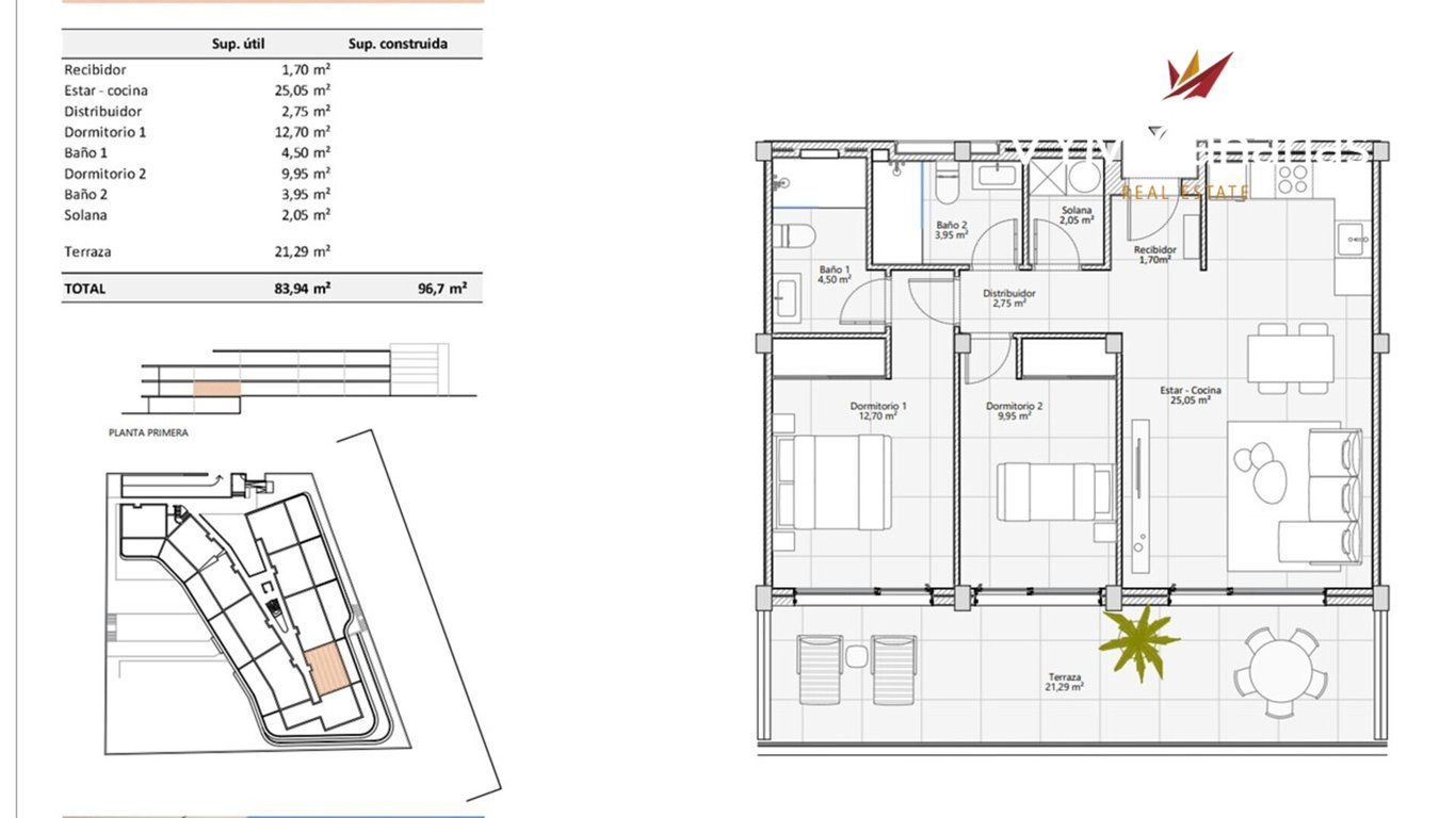 Elegant apartment for sale under construction in the south block of the luxurious Atlantic Homes residential complex in Costa Adeje. Delivery is scheduled for October/November 2025. The property is located on the first floor and has two bedrooms, two bathrooms, and a total floor area of 96 m2, including a 21 m2 terrace with side sea views and sunny orientation throughout the morning until mid-afternoon. The price includes an underground parking space and a storage room. The complex has a heated ...