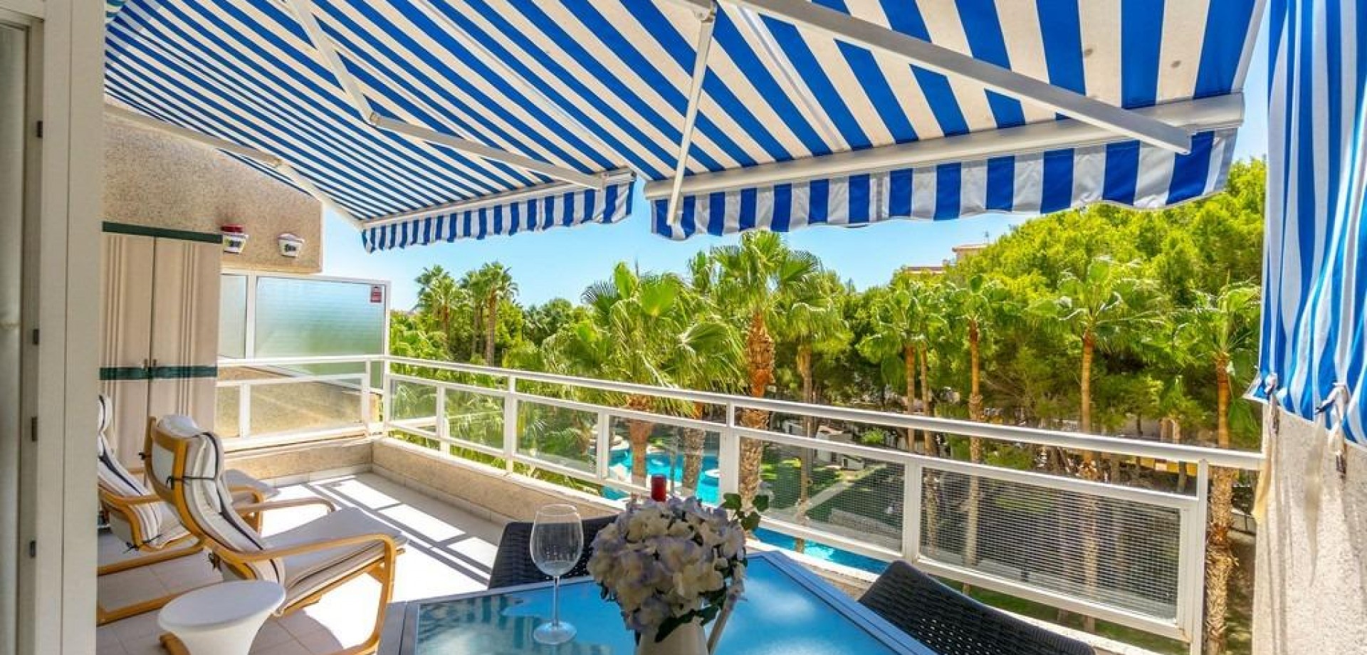 Discover this charming apartment located in Altos de Campoamor, one of the most beautiful and green areas of the Orihuela Costa. With a constructed area of 73 m2 and in very good overall condition, this property is ideal for a perfect holiday or year-round residence. Facing east, it has a bright terrace of approximately 15 m2 where you can relax while enjoying the Mediterranean climate and beautiful views of the residences, its pool, and green areas. The apartment has three double bedrooms, each...