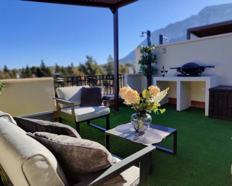 New build apartment for sale in Denia The penthouse apartments consist of: open plan lounge-kitchen-diner with access to the terrace, 2 bedrooms and a bathroom. Equipped with hot and cold air-conditioning. Parking space included. Complex with communal pool and garden, situated at the foot of the Montgo in a beautiful green area next to a green zone. Prices starting at 293.000€, there are also 1 bedroom apartments available from 185.000€. To arrange to view this apartment for sale in Denia, p...