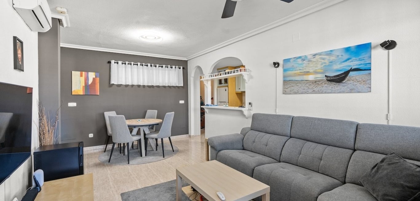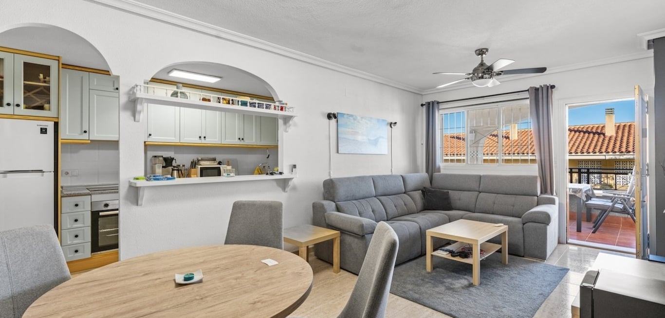 Top Floor Apartment Close to the Sea with Underground Parking Discover this beautifully maintained top-floor apartment located in the sought-after Novamar urbanisation, just a short walk from the beach and all local amenities. The property boasts a spacious private terrace with lovely sea views, perfect for relaxing or entertaining while enjoying the Mediterranean atmosphere. Inside, the apartment offers two comfortable bedrooms and one modern bathroom, a fully equipped kitchen, and a brig...