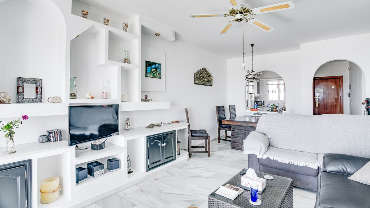 This apartment is located on the first floor of a small residential complex directly on the golf course of El Chaparral. The location is one of the most sought-after residential areas in the region. Within a few minutes, you can reach the popular coastal town of La Cala de Mijas, with restaurants, shopping options, and a well-maintained beach. The living room is bright and offers access to the terrace with sea views. A pass-through connects the living area with the adjacent kitchen. The master b...