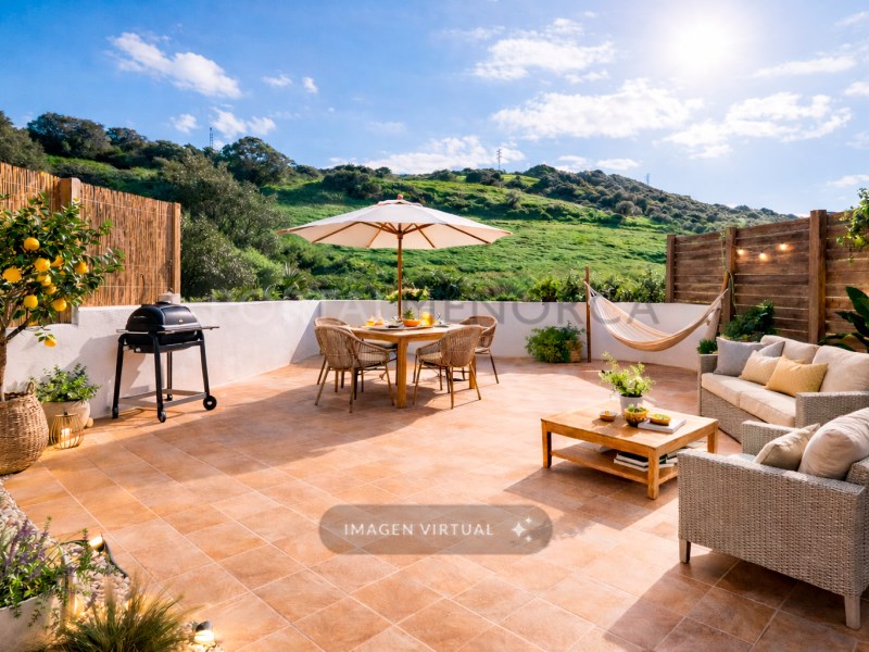 We present this spacious triplex flat for sale in the town of Es Mercadal, with a large patio garden where you can enjoy lovely countryside views and create a space to relax in. The property has a built area of 122m2 plus terraces and is divided over three levels. The ground floor consists of an entrance hall, separate kitchen and a large open plan space where you can design the living-dining area to your liking, and from where you can access the lovely patio with unobstructed views of the coun...