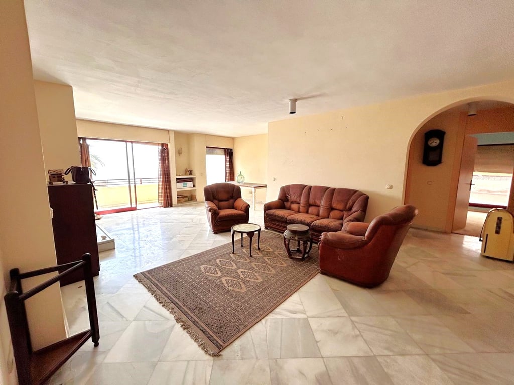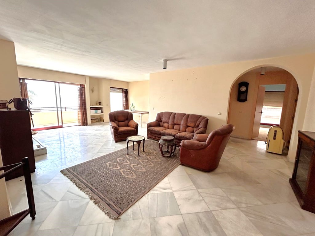 We are pleased to offer this spacious and bright apartment located in a privileged front line location in the town of Estepona. Situated on the first floor with lift access the apartment offers three bedrooms, two bathrooms and large open plan lounge dining and kitchen area, the sunny terrace overlooks the promenade and La Rada beach of Estepona. The apartment is in need of renovation and modernizing but offers a fantastic space and beautiful location for those looking to invest in Estepona, the...