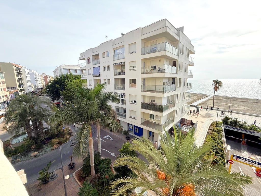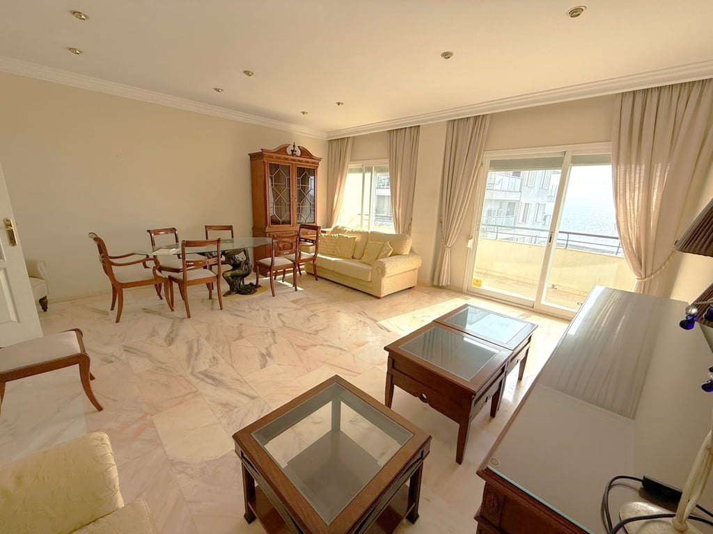 We are pleased to offer this spectacular apartment, front line to the beach in the heart of Estepona town to the market. Sitting on the third floor with lift access the bright and spacious home offers approximately 160sqm of living space distributed across three bedrooms, two bathrooms, large lounge dining area with access to the sunny terrace and a good size kitchen with utility room. The views from the property are stunning and the property attracts sun and natural light throughout the day. Si...