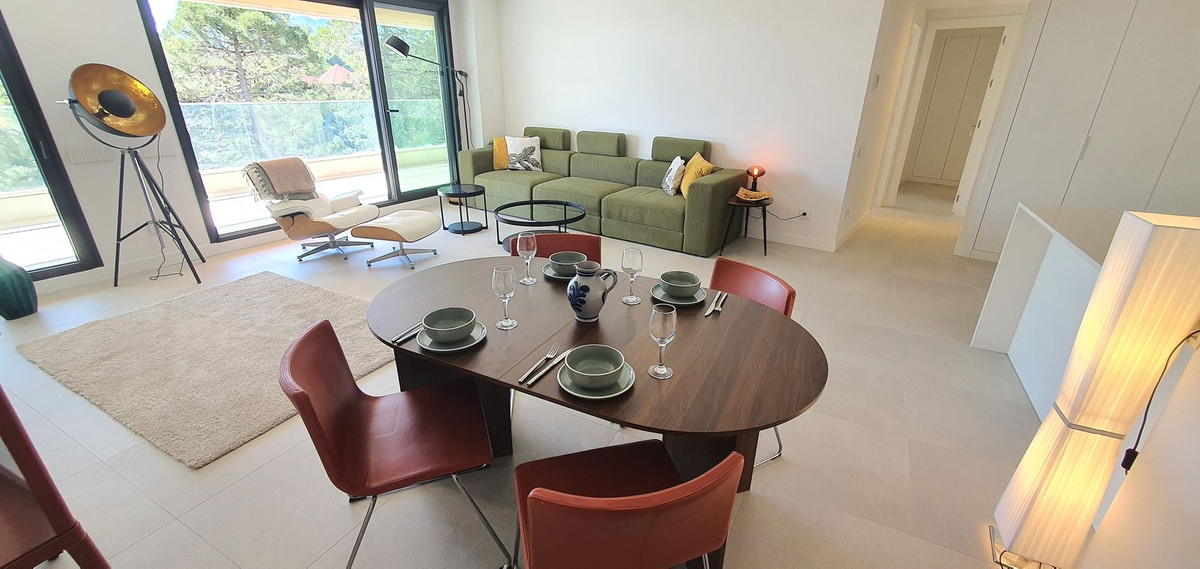 This beautiful bright elegant two-bedroom 2 beathroom apartment in Selwo, Estepona offers a perfect blend of nature, light, and coastal living. South-west facing, the property enjoys abundant afternoon sun and spectacular open views over protected forestland stretching to the Mediterranean Sea, creating a tranquil and private atmosphere. The apartment features a spacious open-plan living and dining area that flows seamlessly onto a generous terrace, ideal for relaxing, entertaining, or enjoying ...