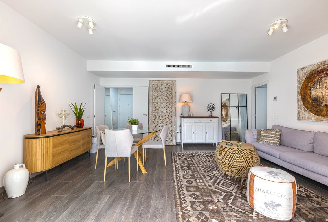 This modern two-bedroom apartment is located in the heart of Estepona, near the beach, shops, schools, and parks. With easy access to both the A-7 coast road and the AP-7 motorway, the location is ideal for getting around the Costa del Sol. Marbella is a 20-minute drive, and the area is well-connected by public transport too. Supermarkets, pharmacies, and cafés are all nearby, and several international schools and medical centres are within a short drive. The surrounding area offers excellent sp...