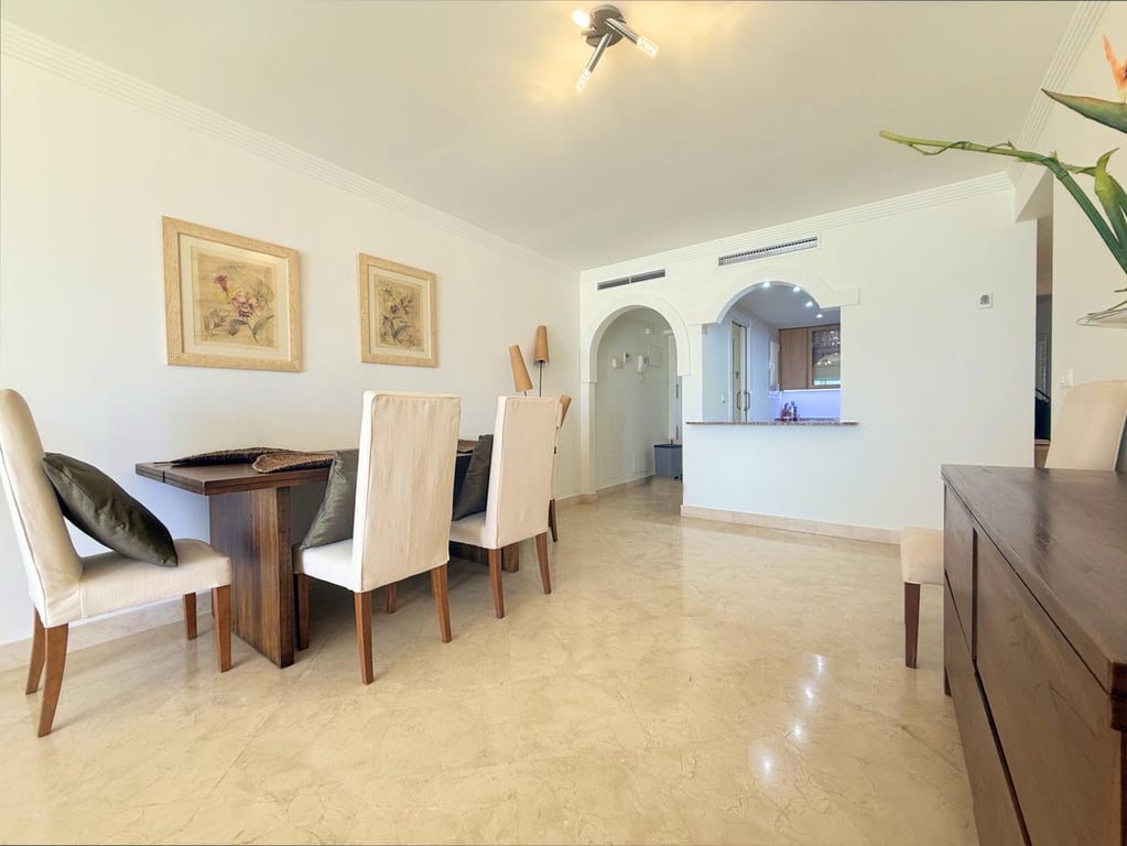 This fantastic property is located in the Estepona area, ideally positioned between Estepona and the charming Puerto de la Duquesa, just a 5-minute drive from all kinds of shops, restaurants, and several golf courses for different skill levels, including the prestigious Finca Cortesín, recognized as the best golf resort in Spain. The apartment is beautifully presented and ready to move into. It stands out for its brightness and excellent southeast orientation, allowing you to enjoy spectacular ...