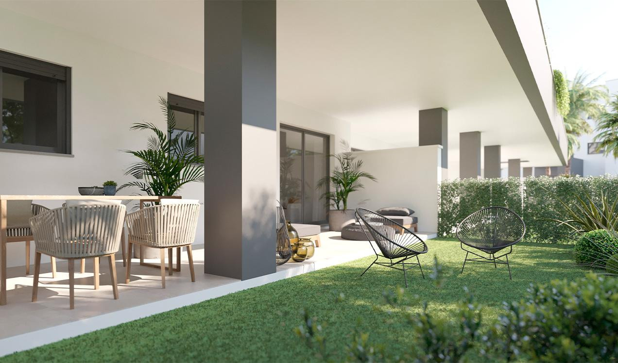 Apartment for sale in Estepona with 2 bedrooms, 2 bathrooms and 1 on suite bathroom, with communal swimming pool, communal garage (1 parking spaces) and private garden. Regarding property dimensions, it has 90.65 m2 built, 66 m2 interior and 19.97 m2 terrace. Has the following facilities amenities near, transport near, air conditioning, fully fitted kitchen, storage room, gym, video entrance, brand new, kitchen equipped, sea view, automatic irrigation system, covered terrace, gated community, li...