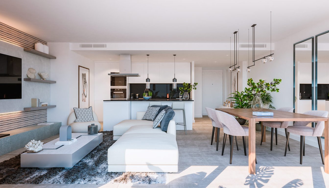 Apartment for sale in Estepona with 3 bedrooms and 2 bathrooms, with communal swimming pool, private garage and communal garden. Regarding property dimensions, it has 108.03 m2 built and 36.65 m2 terrace. Has the following facilities amenities near, transport near, air conditioning, storage room, brand new, private terrace, kitchen equipped, sea view, mountain view, golf view, laundry room, covered terrace, garden view, pool view, panoramic view, close to children playground, close to sea / beac...