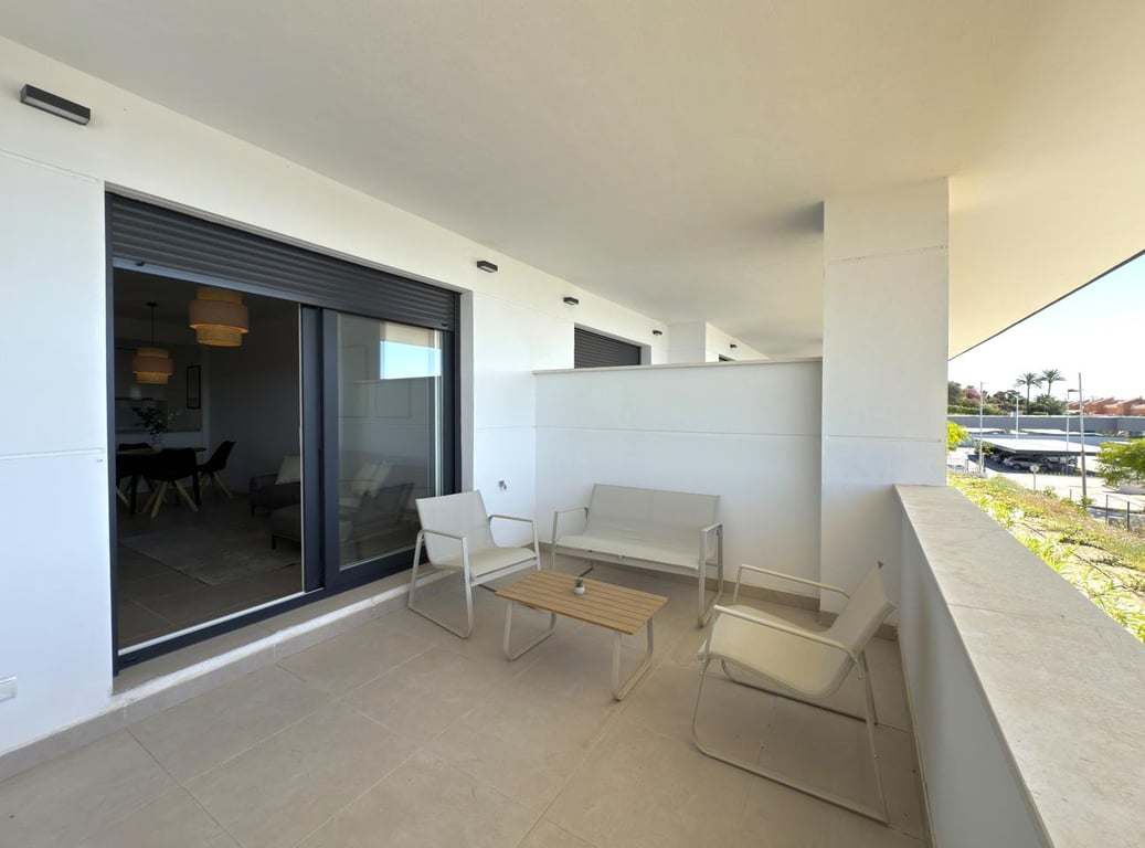 Located in one of Estepona’s most dynamic areas, this beautiful apartment is just 200 meters from the beach and a 5-minute drive from the lively marina, an area known for its vibrant beach bars, restaurants, leisure spots, and a long promenade that connects the entire Costa del Sol. Marbella is 20 km away, and Málaga International Airport is 50 km away. Part of a modern residential complex completed in 2024, this bright ground-floor home boasts sea views, a spacious terrace, and a private garde...