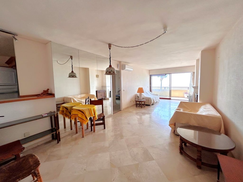 We are pleased to offer this spacious and bright apartment located in a privileged front line location in the town of Estepona. Situated on the first floor with lift access the apartment offers two bedrooms, two bathrooms and large open plan lounge dining and kitchen area, the sunny terrace overlooks the promenade and La Rada beach of Estepona. The apartment is in need of renovation and modernizing but offers a fantastic space and beautiful location for those looking to invest in Estepona, inclu...
