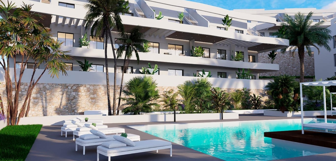 NEW BUILD RESIDENTIAL COMPLEX IN FINESTRAT New Build residential complex in Balcon de Finestrat. This complex of modern apartments with 2 bedrooms, 2 bathrooms, open plan kitchen with the living area. Some of the apartments will have sea views. Ground floor apartment with a private gardens, middle floor apartments with the terraces and top floor apartments has a terraces and private solariums. Each property has private underground parking space. The properties have access to the communal ar...