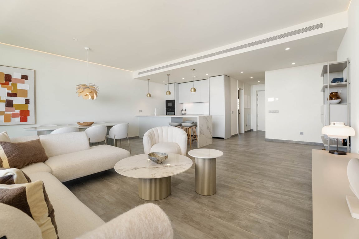 Situaded within a secure residential enclave in El Higuerón, this brand-new three-bedroom corner apartment offers refined contemporary living with open sea and valley views. Located in the most elevated and private phase of the development, the property benefits from protected outlooks due to the agricultural land set in front, preserving long-term views and privacy. With a total built interior of 117,11 m2 and a spacious corner terrace, the residence is designed to create a seamless connection ...