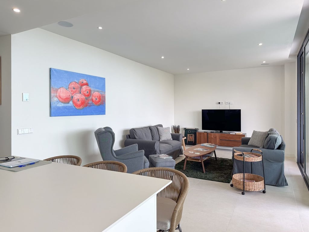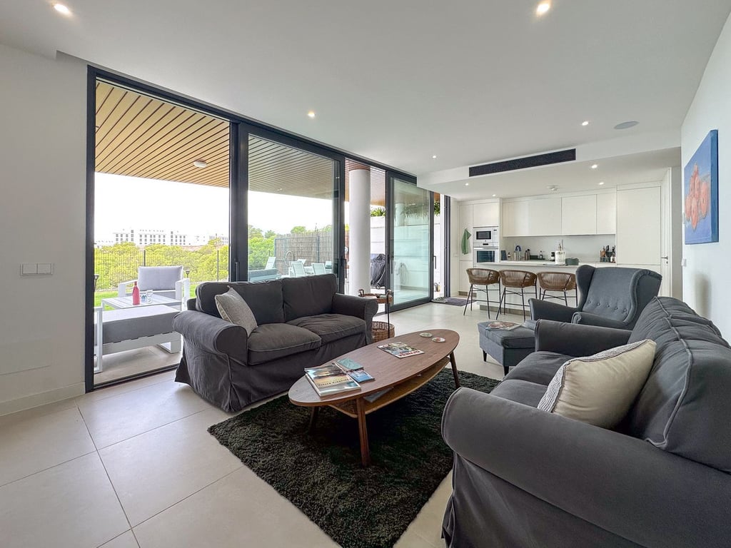 This spacious 2-bedroom ground floor apartment is located in the sought-after Higueron West community. As you enter, you're welcomed by a hallway that leads either straight into the open-plan kitchen and living area or down to the bedrooms and bathrooms. The layout is both functional and comfortable. One bedroom, with built-in wardrobes, sits just off the hall, opposite a full bathroom. At the end of the hallway, the master bedroom features a walk-in closet and en-suite bathroom. The kitchen i...
