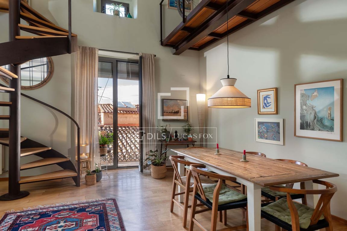 Lucas Fox presents this exclusive penthouse located in the heart of the Jewish neighbourhood of Girona, in one of its most emblematic streets, which dates back to the 12th century and is part of the Inventory of the Architectural Heritage of Catalonia. The apartment is located on the top floor of a beautiful period building and has large windows, so it enjoys lots of light and a cozy atmosphere. It is distributed on two floors. In the main one, we find the spacious living-dining room with high...