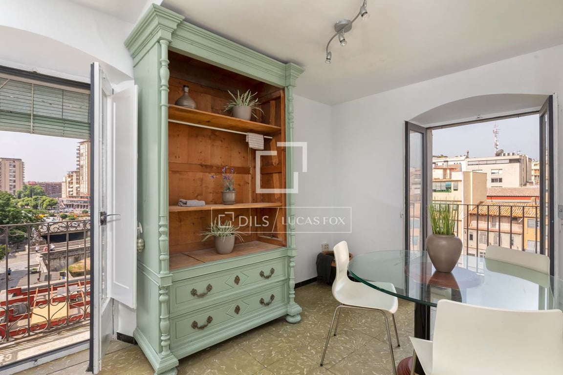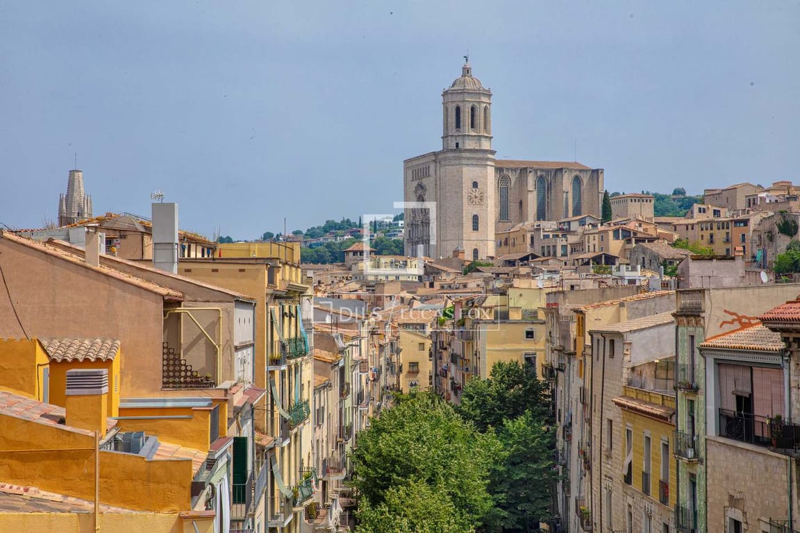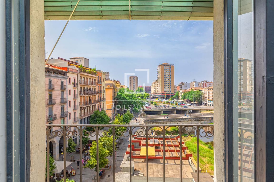 At the top of Girona's legendary Rambla, this penthouse occupies the top floor of a unique building, with unparalleled views of the city: the cathedral, the Onyar River, and the rooftops of the old town. The property boasts a generous floor area and a functional layout , with three bedrooms (one double with access to a balcony and two additional bedrooms), a spacious 22 m2 living-dining room with access to a private balcony, a well-ventilated separate kitchen , and a full bathroom . The buil...