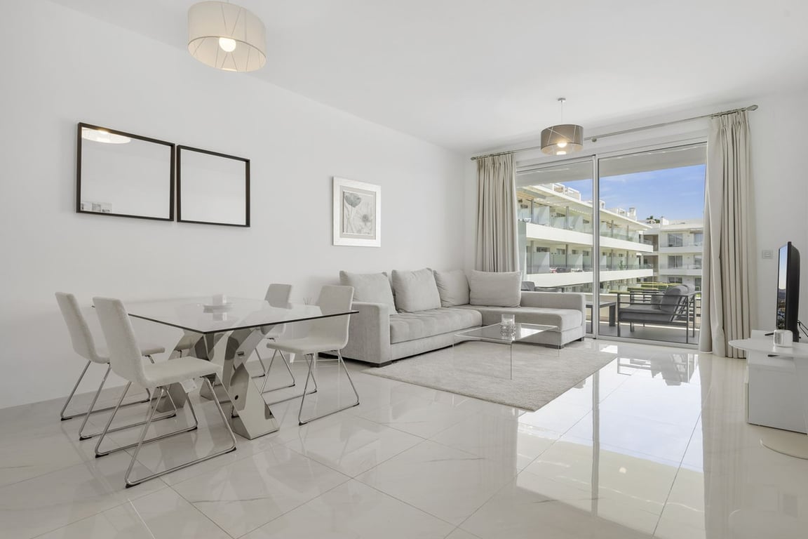 Modern apartment located in an excellent spot on the New Golden Mile, just few steps from all the services. With modern amenities, stylish finishes, and plenty of space, this apartment is perfect for families or as a base on the Costa del Sol. Key Features: – 3 Spacious Bedrooms: Perfect for families or those needing extra space. The master bedroom features an ensuite bathroom, while the other two bedrooms are generously sized with plenty of closet space. – Bright & Airy Living Room: The open-pl...