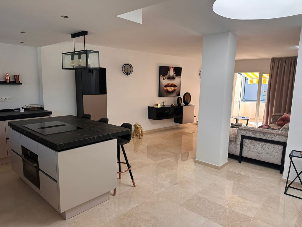 1st line beach on the New golden Mile between Marbella and Estepona! Top-floor apartment on 1st floor with large south facing terrace, partly covered. Built area of 96 sqm. Offering entrance area leading to the open plan kitchen-dining lounge with outgoing to the terrace. Spacious master bedroom with en-suite bathroom, 2nd bedroom and a 2nd bathroom separate. Storage room. Parking space internal in the gated community in front of the entrance of the apartment. The apartment is located in the low...
